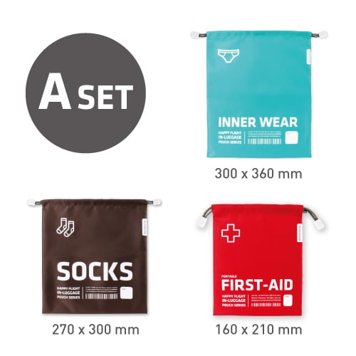 アイコンがついたインラゲージポーチセット。これさえあれば旅行の際の整理整頓も安心。