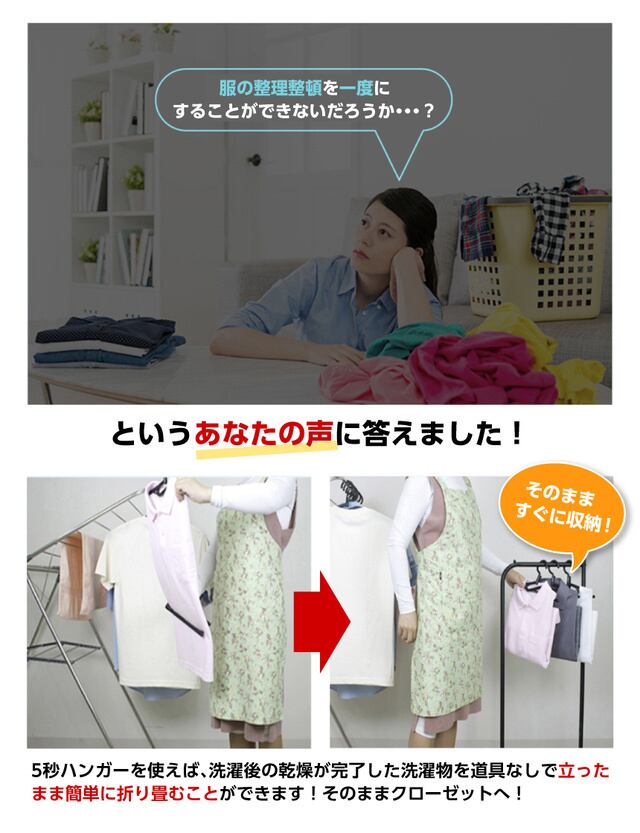 ごちゃごちゃクローゼットがあっという間に整頓!立ったまま畳める驚きの5秒ハンガーです。