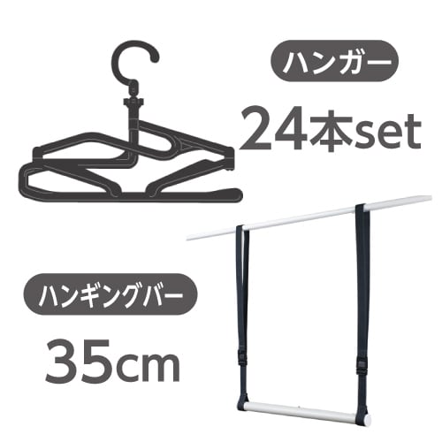 【期間限定アウトレット30%OFF】(Bset)5秒ハンガー(ハンガー24本&ハンギングバー35cm1本)